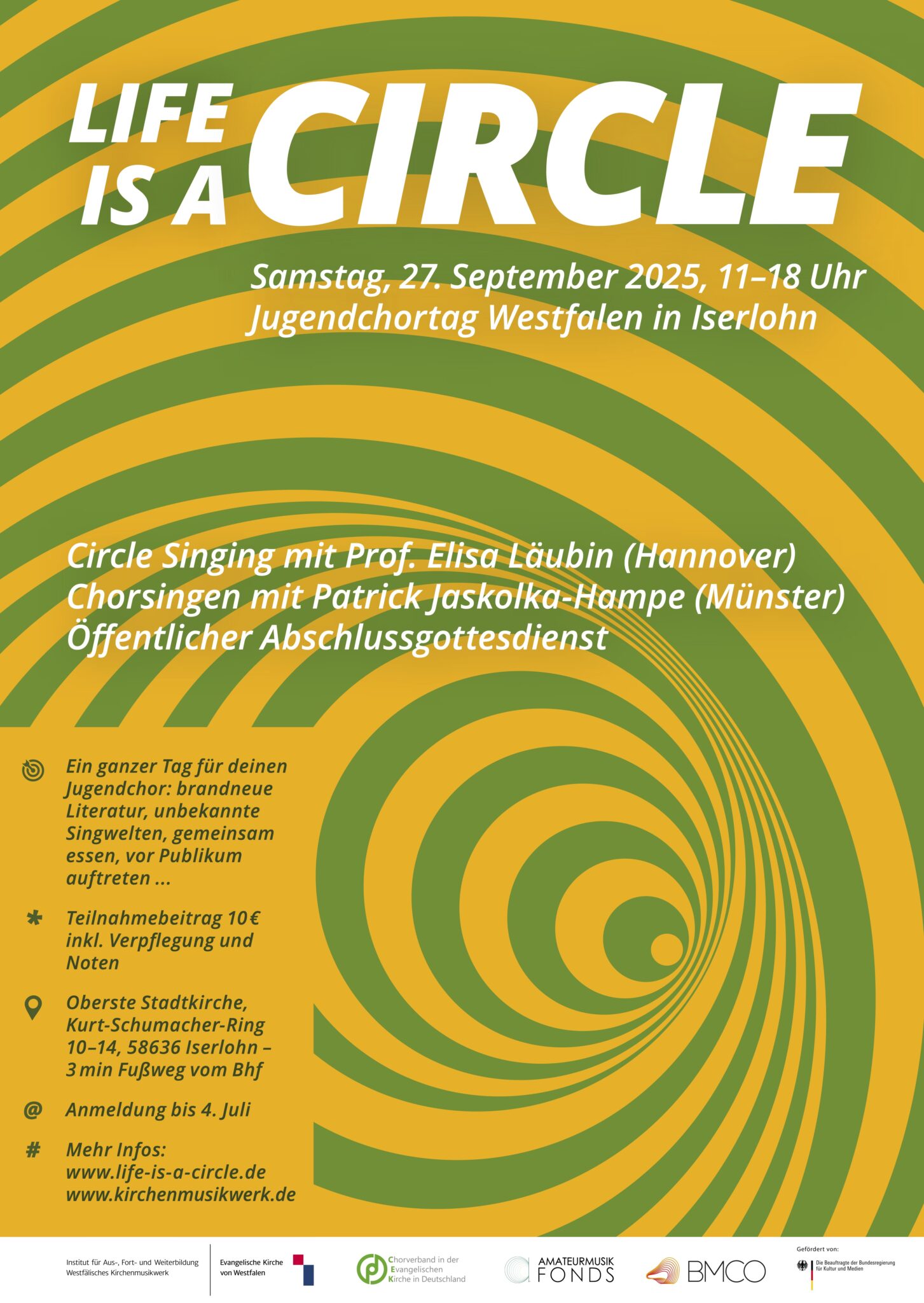 Samstag, 27. September – 17 Uhr Oberste Stadtkirche Abschlussgottesdienst des Jugendchortages Westfalen mit Circle-Singing und dem großen Workshop-ChorInfos unter: https://choere-evangelisch.de/jugendchortreffen/