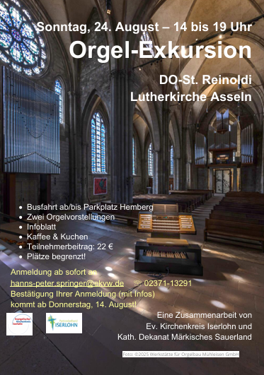 Die Orgelexkursion führt uns in diesem Jahr nach Dortmund!